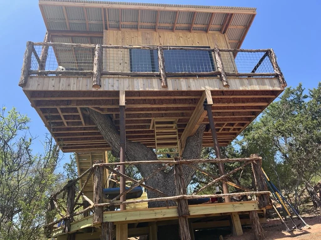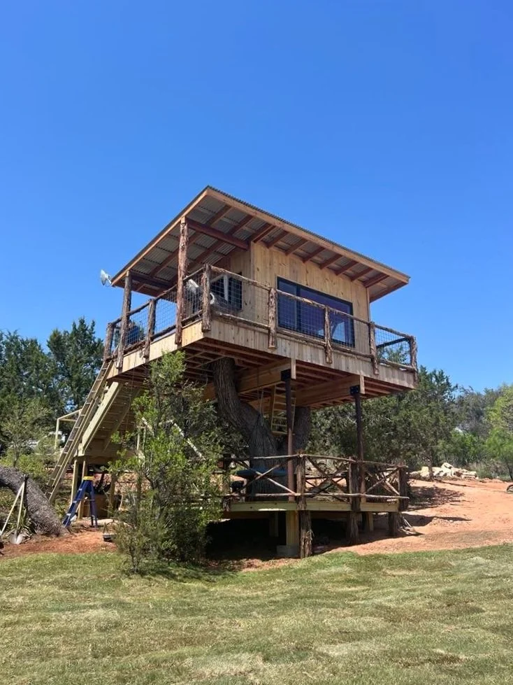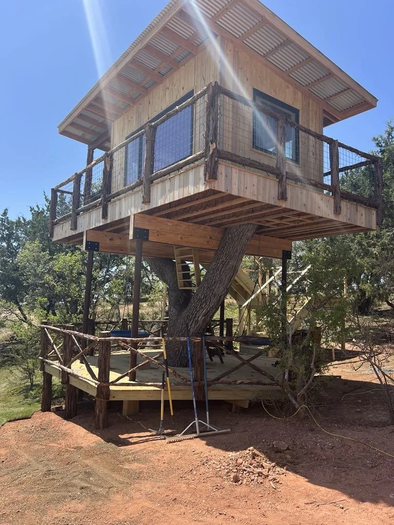 We specialize in building custom residential and commercial tree houses. This particular one was custom-made using leftover materials from a recent residential project. A custom tree house such as this one has durability to last a lifetime.